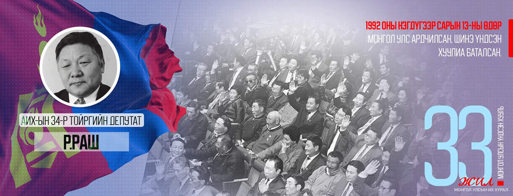 Улс орны хөгжлийн хууль, эрх зүйн суурь үндэс болох одоогийн Үндсэн хуулийг батлалцах завшаан надад тохиосонд би бэлэгшээж явдаг. Үндсэн хуулийн төслийг Улсын Бага Хурал боловсруулж, Ардын Их Хуралд оруулж хэлэлцүүлсэн юм. АИХ анх 10 хоног хуралдана гэж ажлаа төлөвлөөд 76 хоногг хуралдаж, 76 гишүүнтэй УИХ-ыг байгуулж төрийн эрхийг түүгээр бариулахаар шийдсэн билээ.