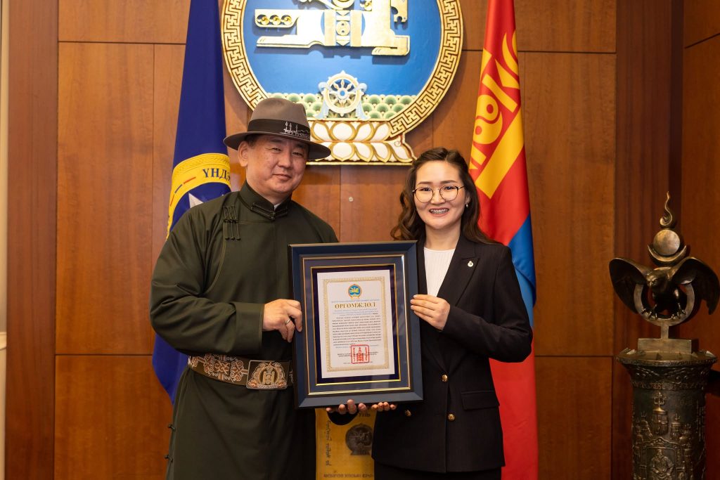 Монгол Улсын Ерөнхийлөгч Ухнаагийн Хүрэлсүх шилдэг залуу эрдэмтдэд нэрэмжит шагналаа хүртээж, баяр хүргэлээ.