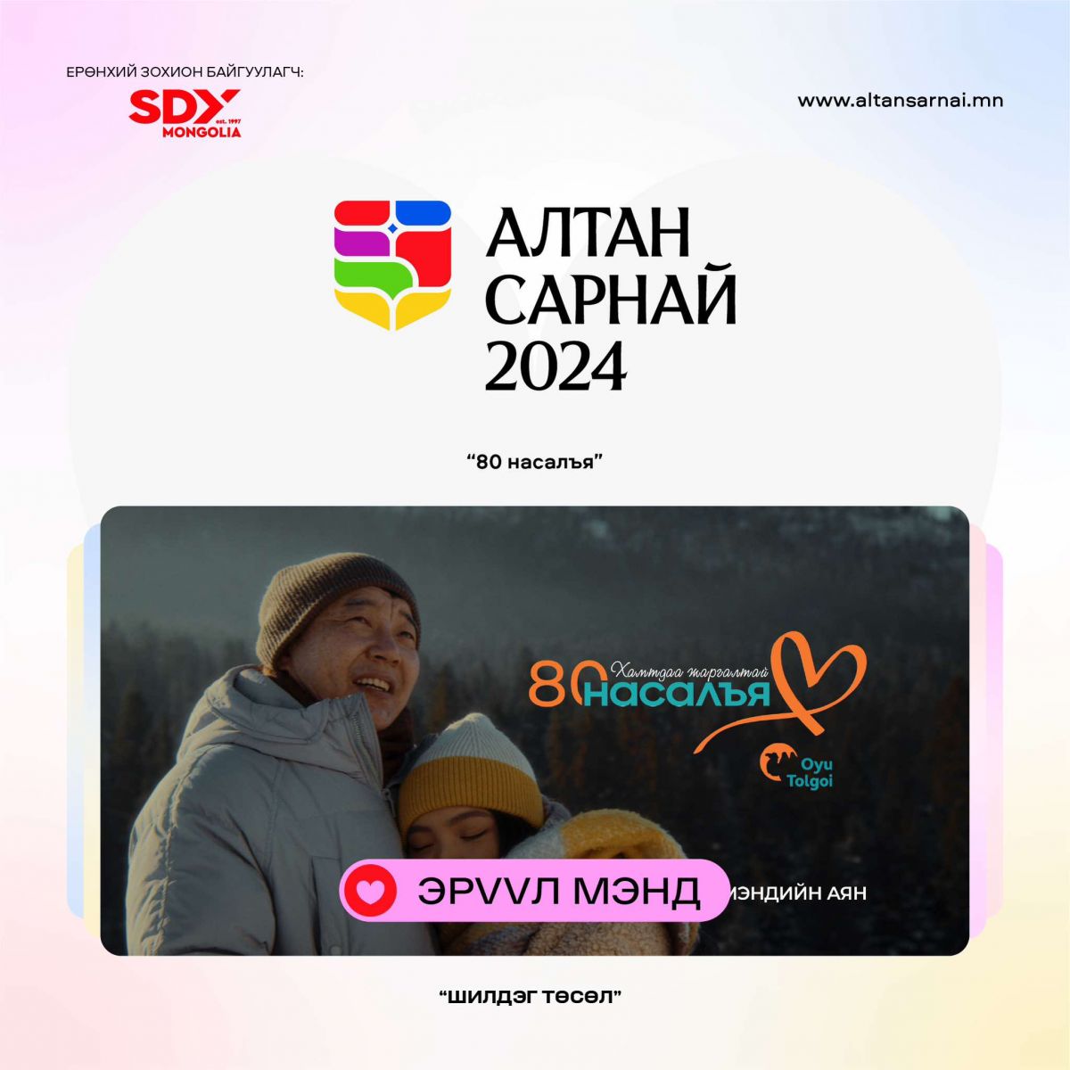 Уг төрөлд “Оюу толгой” компанийн 2021 оноос эхлэн санаачлан хэрэгжүүлж буй “80 насалъя” аян шилдгээр шалгарчээ. Энэхүү аян нь монгол эрчүүдийн дундаж наслалтыг нэмэгдүүлэх зорилготой. Энэ хүрээнд эрчүүд эрүүл мэнддээ анхаарах, өөрийгөө халамжлах, улмаар гэр бүл, нийгэмдээ олон жилийн турш түшиг тулгуур болоход уриалах ажлуудыг шинэлэг байдлаар өрнүүлсэн юм. Мөн өөрт тулгарсан асуудлыг ярилцах талбар www.80nasalya.com вэбсайтыг хөгжүүлжээ.