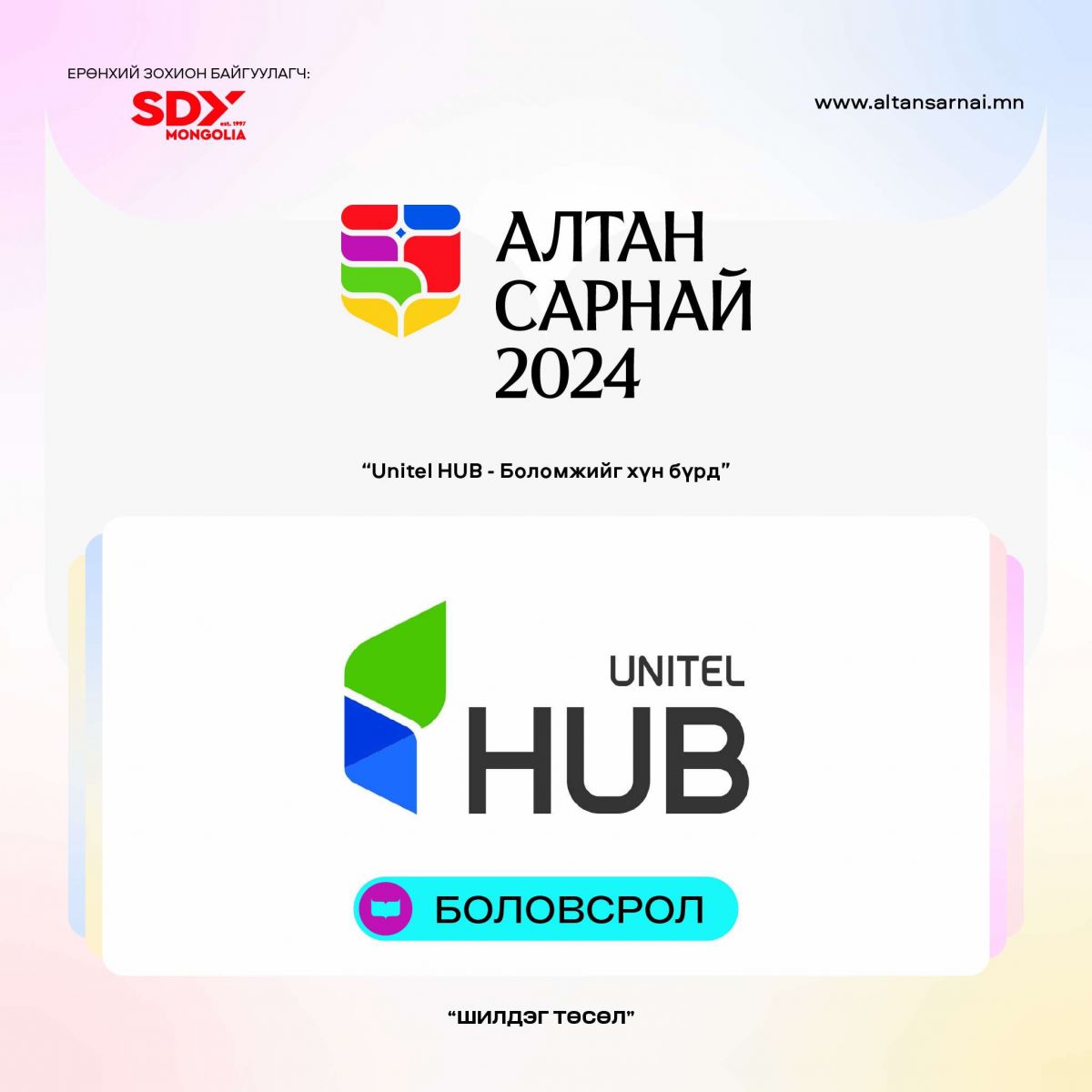 Боловсролын төрөлд Unitel HUB төсөл шалгарсан. Энэхүү төсөл нь 21 аймгийн хүүхэд залууст STEM боловсрол олгож, робот угсрах, код бичих, электроникийн суурь ойлголтуудыг өгөх сургалтуудыг тогтмол явуулж, ирээдүйн инженерүүдийн анхны гараагаа эхлэх цэг нь болж буй. Тэд “Хамгийн өргөн боломжийг хүн бүрд жигд хүртээнэ” хэмээх эрхэм зорилго дор хүүхэд бүрд тэгш боломж хүртээн ажиллаж байна.