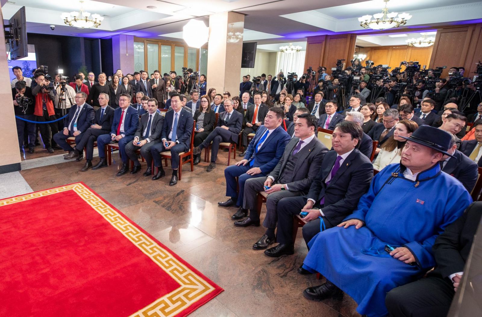 Монгол Улс ковидоос хойш хамгийн хурдтай өсөж буй эдийн засагтай улсын хувьд дэлхийн бүхий л улс орны Засгийн газар, хөрөнгө оруулагчид, баялгийн сангуудтай эрдэс баялаг, цэвэр эрчим хүчний үйлдвэрлэл, хөдөө аж ахуй, аялал жуулчлал, тээвэр логистик, дэд бүтцийн хөрөнгө оруулалтад харилцан ашигтай хамтран ажиллахад бэлэн байгаагаа Ерөнхий сайд Л.Оюун-Эрдэнэ илэрхийллээ.