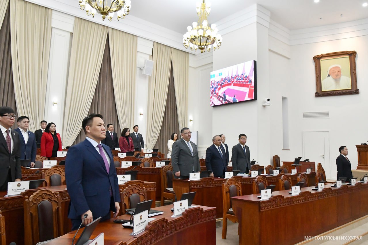 Хуралдааны эхэнд Улсын Их Хурлын дарга Д.Амарбаясгалан, Монгол Улсын анхны Ерөнхийлөгч, Бүгд Найрамдах Монгол Ард Улсын Ардын Их Хурлын Тэргүүлэгчдийн дарга, төр, нийгмийн нэрт зүтгэлтэн, Монгол Улсын шинэ Үндсэн хуулийг боловсруулах ажлыг зохион байгуулах комиссын тэргүүн, Монгол Улсын гадаад харилцааг өргөжүүлэн олон улс дахь байр суурийг бэхжүүлсэн монголын ард түмний эрхэм хүмүүн Пунсалмаагийн Очирбат нь 2025 оны 01 дүгээр сарын 17-ны өдөр 83 насандаа өвчний улмаас таалал төгсөж, Монгол Улс, монголын ард түмэнд хүнд гарз тохиосныг онцлон тэмдэглэв. Иймд Монгол Улсын анхны Ерөнхийлөгч, төр, нийгмийн нэрт зүтгэлтэн П.Очирбатын гэгээн дурсгалыг хүндэтгэж Улсын Их Хурлын гишүүд суудлаасаа босож зогсон, нэг минут эмгэнэл илэрхийлэв.