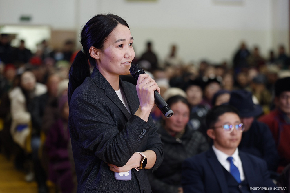 Монгол Улсын Их Хурлын дарга Д.Амарбаясгалан, Улсын Их Хурлын гишүүн Э.Болормаа нар өнөөдөр (2025.02.03) Ховд аймгийн Алтай, Үенч суманд ажиллаж, иргэдэд Улсын Их Хурлын бодлого, үйл ажиллагааг тайлагнан, хууль тогтоомжийн хэрэгжилттэй танилцлаа.