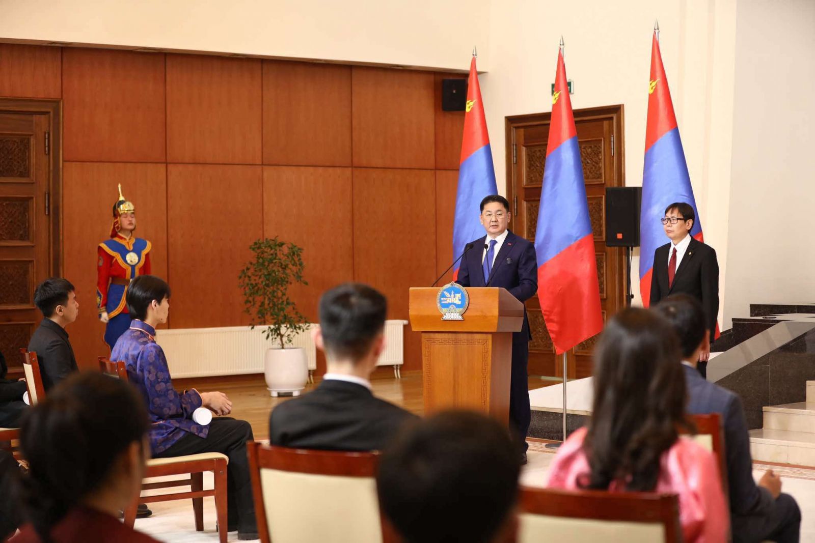 Тэтгэлэгт хөтөлбөрийн эзэд болж, бэлтгэл хөтөлбөрт суралцаж байгаа оюутан залууст Монгол Улсын Ерөнхийлөгч амжилт хүсэж, захиа, даалгавар гардууллаа.