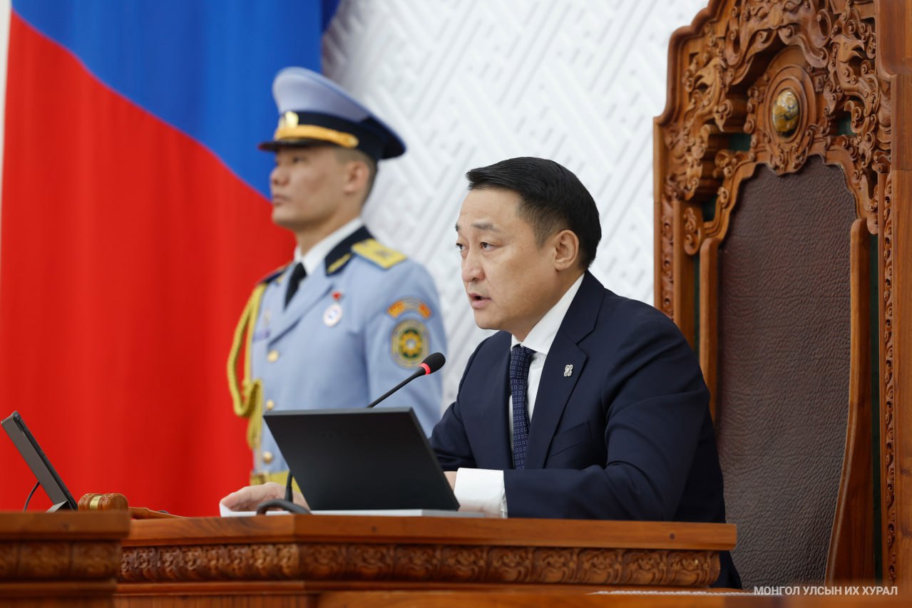 Монгол Улсын Их Хурлын 2025 оны хаврын ээлжит чуулганыг нээж, УИХ-ын дарга Д.Амарбаясгалан үг хэлэв.