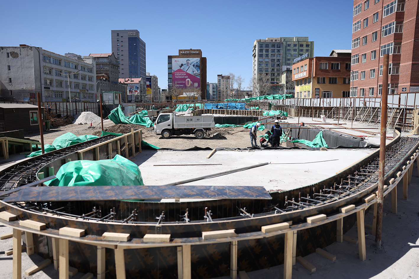 Тэрбээр “Урт цагаан төслийн барилга угсралтын ажил хоёр хэсэгтэй. Нийт төслийн төмөр бетон хийц болон далд зогсоолын ажил дуусаж байна. Нэгдүгээр хэсгийг долоодугаар сард багтаан ашиглалтад оруулна. Үүнд, цэцэрлэгт хүрээлэн буюу дээрээ тохижилт бүхий авто зогсоол багтаж байна. Хоёрдугаарт цэцэрлэгт хүрээлэнгийн хажууд байрлах B1 давхартайгаа нийлээд гурван давхар үйлчилгээний барилгыг есдүгээр сард багтаан ашиглалтад оруулна” гэв.