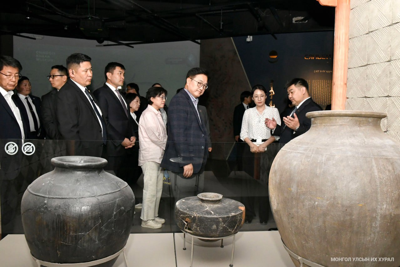 Хүндэт зочдыг “Чингис хаан” үндэсний музейн захирал, академич С.Чулуун угтан авч, Монголын түүх, соёлын сор болсон бүтээлүүд, үзмэрүүдийг тайлбарлан танилцуулсан. Тэрбээр, манай хоёр улс 2000 жилийн тэртээгээс гүнзгий харилцаатай байсныг дурдаад, сүүлийн 30 жилийн хугацаанд Монгол, Солонгосын археологичдын хамтарсан баг Хүннүгийн археологийн судалгаанд томоохон дэвшил гаргасныг онцолсон юм. Тухайлбал, хамтарсан судалгааны баг Төв аймгийн Баянжаргалан сумын нутгаас Хүннүгийн хаадын зуны ордныг илрүүлснийг тодотгосон.