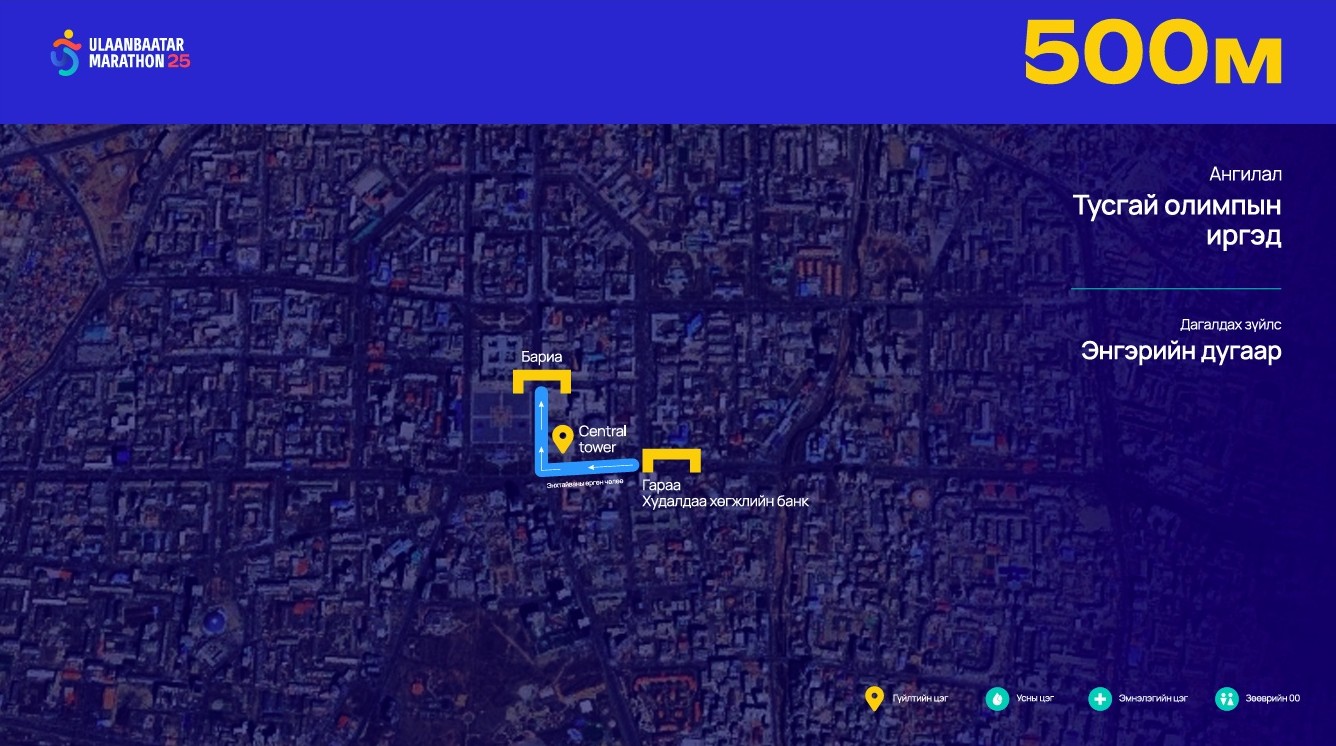 Гэр бүлийн гишүүдтэйгээ гүйхээр төлөвлөсөн болон тэргэнцэртэй, хараагүй иргэд гүйх 1.5 км-ийн зайн гүйлт нь үдээс хойш болно.