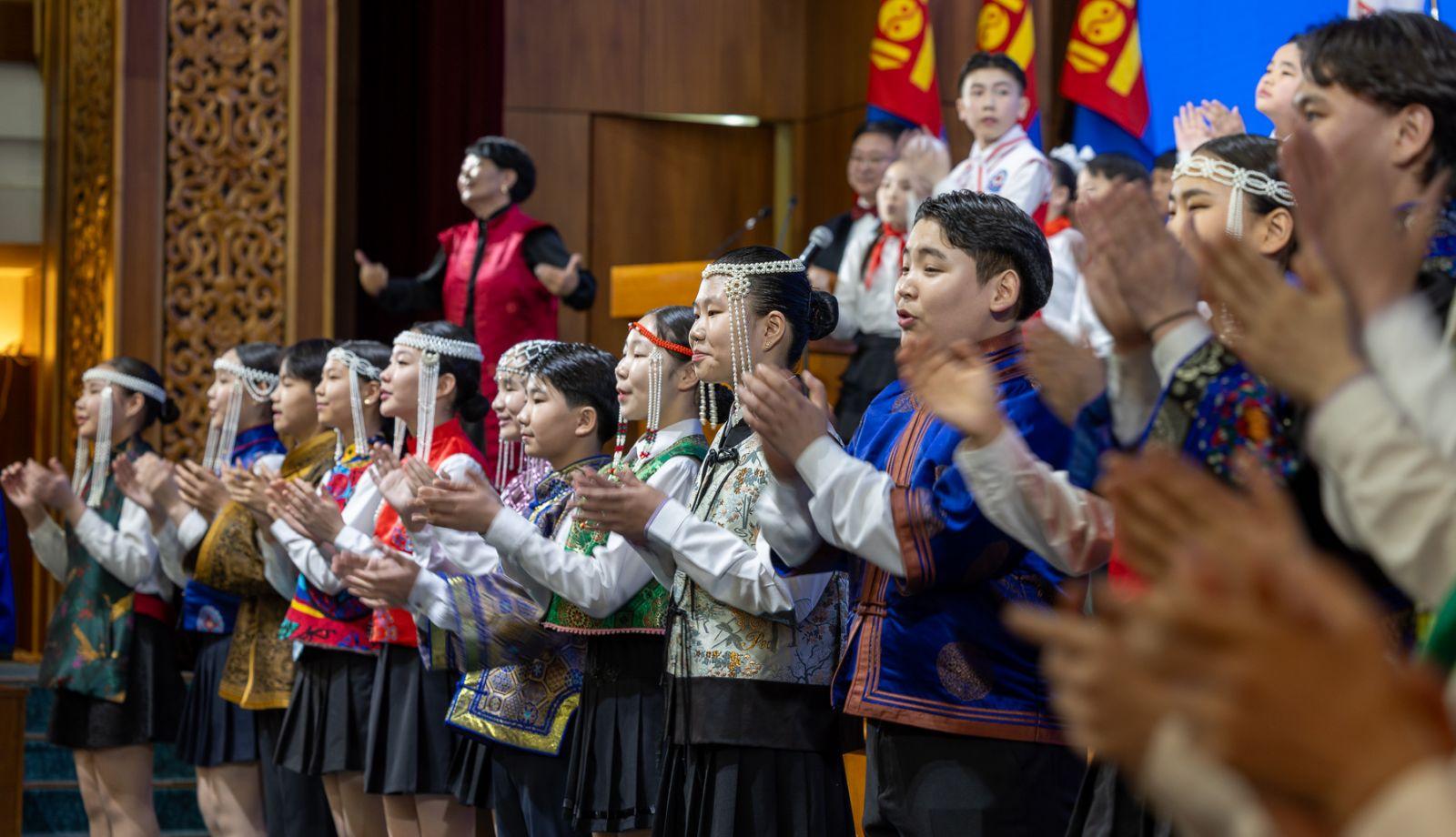 Хүндэтгэлийн чуулга уулзалт Төрийн ордонд болж, Монгол Улсын Ерөнхий сайд Л.Оюун-Эрдэнэ 100 жилийн ойн баярын мэндийг Засгийн газар, Хүүхдийн төлөө Үндэсний зөвлөлийн нэрийн өмнөөс дэвшүүллээ.