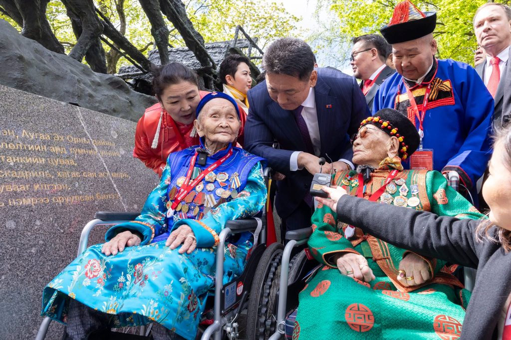 Ерөнхийлөгч У.Хүрэлсүх ОХУ-ын нийслэл Москва хотын Хүндэтгэлийн дэнж дэх “Ялалтын цэцэрлэгт хүрээлэн”-д Монголын ард түмнээс бэлэг болгосон “Ялалтад тэмүүлсэн морьд” хөшөөнд хүндэтгэл үзүүллээ.
