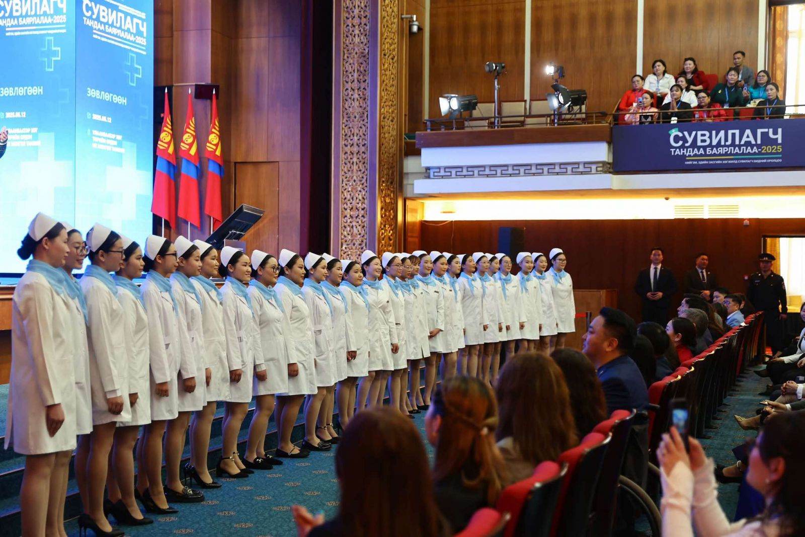 Монгол Улсын Ерөнхийлөгчийн ивээл дор Төрийн ордонд “Сувилагч тандаа баярлалаа-2025” улсын зөвлөгөөн болж байна. Ерөнхийлөгч Ухнаагийн Хүрэлсүх ёслолд оролцож, сувилагч, эрүүл мэндийн салбарын ажилтан, албан хаагчид болон зочид, төлөөлөгчдөд талархал илэрхийлж, Олон улсын сувилагчдын баярын мэнд хүргэлээ.