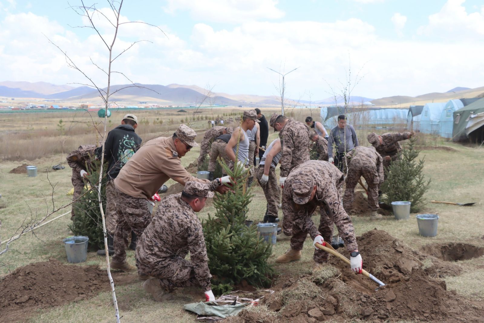 Зэвсэгт хүчний 5 ангийн харьяанд нийт 34 га талбай бүхий "Мод үржүүлэг-агро экологийн төв" байгуулж, мод, бутны суулгацын нөөцийг бий болгох зорилгоор ойн сан бүхий газараас 156 кг модны үрийг түүх, 2 сая гаруй бэлдэц харандааг технологийн дагуу бэлтгэх ажлыг өнгөрсөн 2 жилийн хугацаанд хэрэгжүүлж, 2024 онд 31 нэр төрлийн 390 гаруй мянган мод, бутыг тариалсан бол энэ онд 1 сая мод тарихаар төлөвлөөд байна.