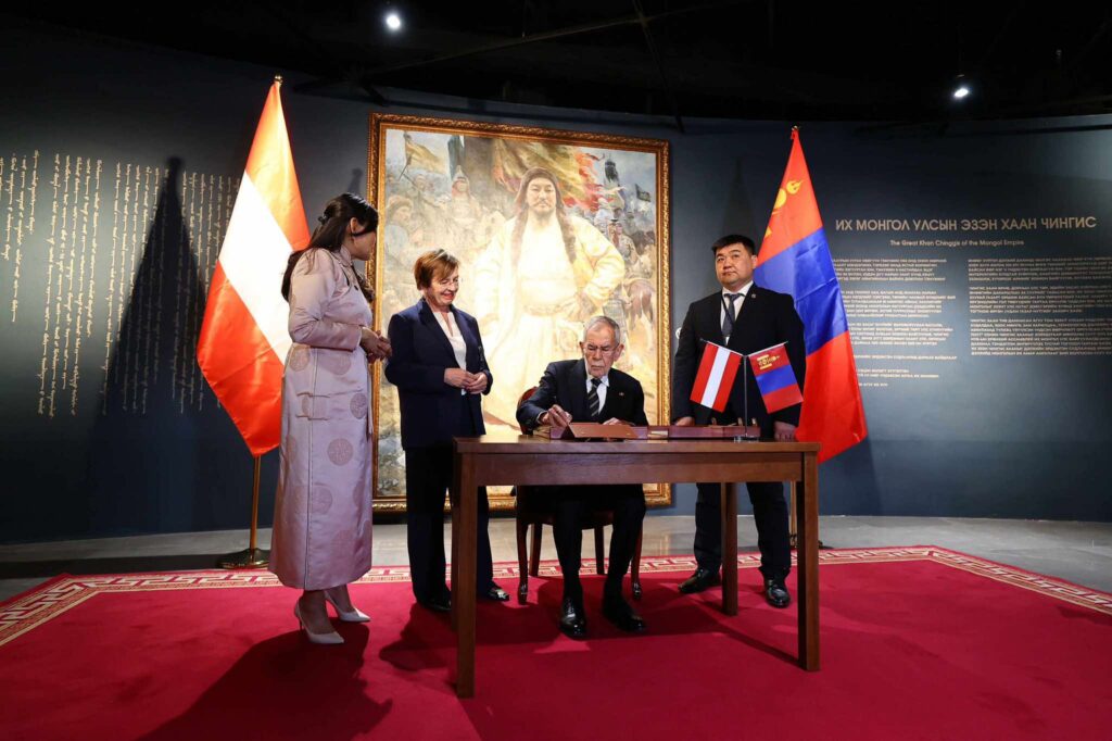 Бүгд Найрамдах Австри Улсын Төрийн тэргүүн, гэргийн хамт музейн үзмэрүүдтэй танилцаж, Чингис хаан үндэсний музейн “Хүндэт зочны дэвтэр”-т дурсгалын үг бичиж, гарын үсгээ зурлаа.