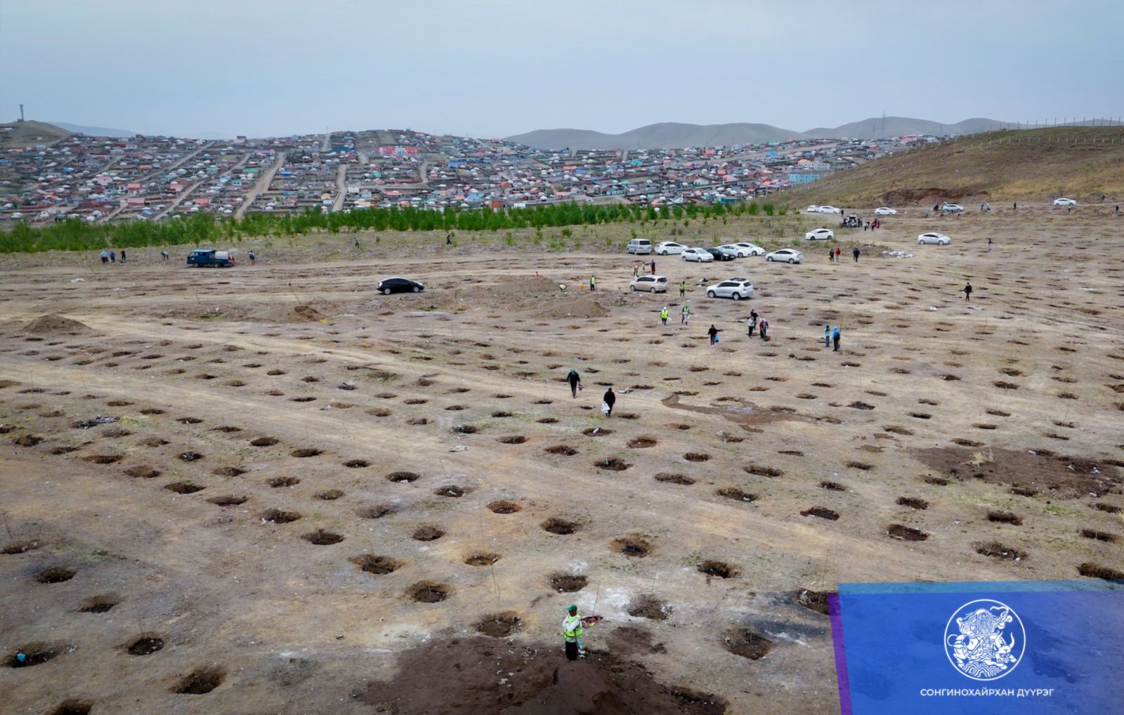 Сонгинохайрхан дүүргийн засаг дарга Ц.Баттөрийн санаачилгаар 13 хорооны 45 байршилд үүссэн 500 орчим тн хогийг 14 хоногийн хугацаанд цэвэрлэж Нарангийн төвлөрсөн хогийн цэгт зөөвөрлөсөн. Улмаар тус газарт 3.1 км урттай хашаа татаж 38 га талбайд 8800 улиас, 1200 хайлаас, бургас тарьж ойн зурвас үүсгэжээ.