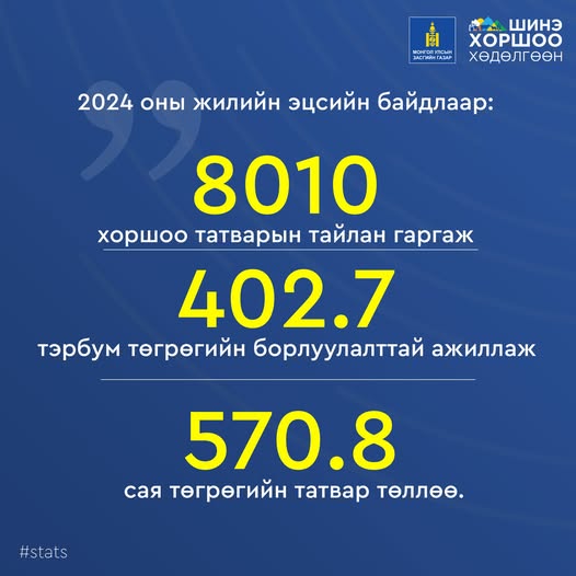 Мөн 2024 оны байдлаар хоршоологчдын борлуулалтын орлого нийтдээ 402 тэрбум төгрөгт хүрч, Монгол Улсын төсөвт 500 гаруй сая төгрөгийн татварын орлого төвлөрүүлжээ. Иймээс “Шинэ хоршоо хөдөлгөөн” нь төсвийн мөнгө үр дүнгүй зарцуулсан хөтөлбөр бус, малчдын хувийн хариуцлагад суурилсан, банкны зээлийн эх үүсвэртэй, санхүүгийн сахилга бат бүхий хөдөлгөөн болохыг бодит тоо баримт, үр дүн харуулж байна.