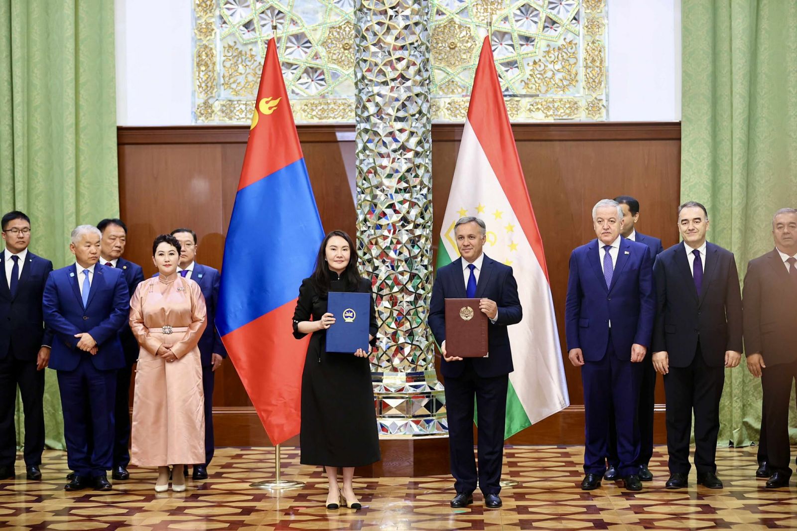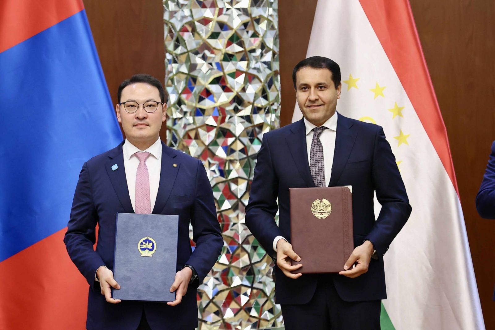 Төрийн тэргүүн нар уламжлалт найрсаг харилцаа, хамтын ажиллагааг хөгжүүлэх эрмэлзлээ нотолж, харилцааг улс төр, худалдаа, эдийн засаг, аж үйлдвэрлэл, хөдөө аж ахуй, сэргээгдэх эрчим хүч, тээвэр, логистик, боловсрол, соёл, аялал жуулчлал зэрэг бүх салбарт өргөжүүлэн бэхжүүлэхээр тохиролцлоо. “Хамтран ажиллах тухай Монгол Улсын Гадаад харилцааны яам, Бүгд Найрамдах Тажикистан Улсын Гадаад хэргийн яам хоорондын Харилцан ойлголцлын санамж бичиг“-т Монгол Улсын Гадаад харилцааны сайд Батмөнхийн Батцэцэг, Бүгд Найрамдах Тажикистан Улсын Гадаад хэргийн сайд Сироджиддин Мухриддин, Яамд хамтын ажиллагааг өргөжүүлэн хөгжүүлэх, зөвлөлдөх уулзалт зохион байгуулах зэргээр мэдээлэл, туршлага солилцож, бусад салбарын яамд, байгууллага хоорондын уялдаа холбоог бэхжүүлнэ.