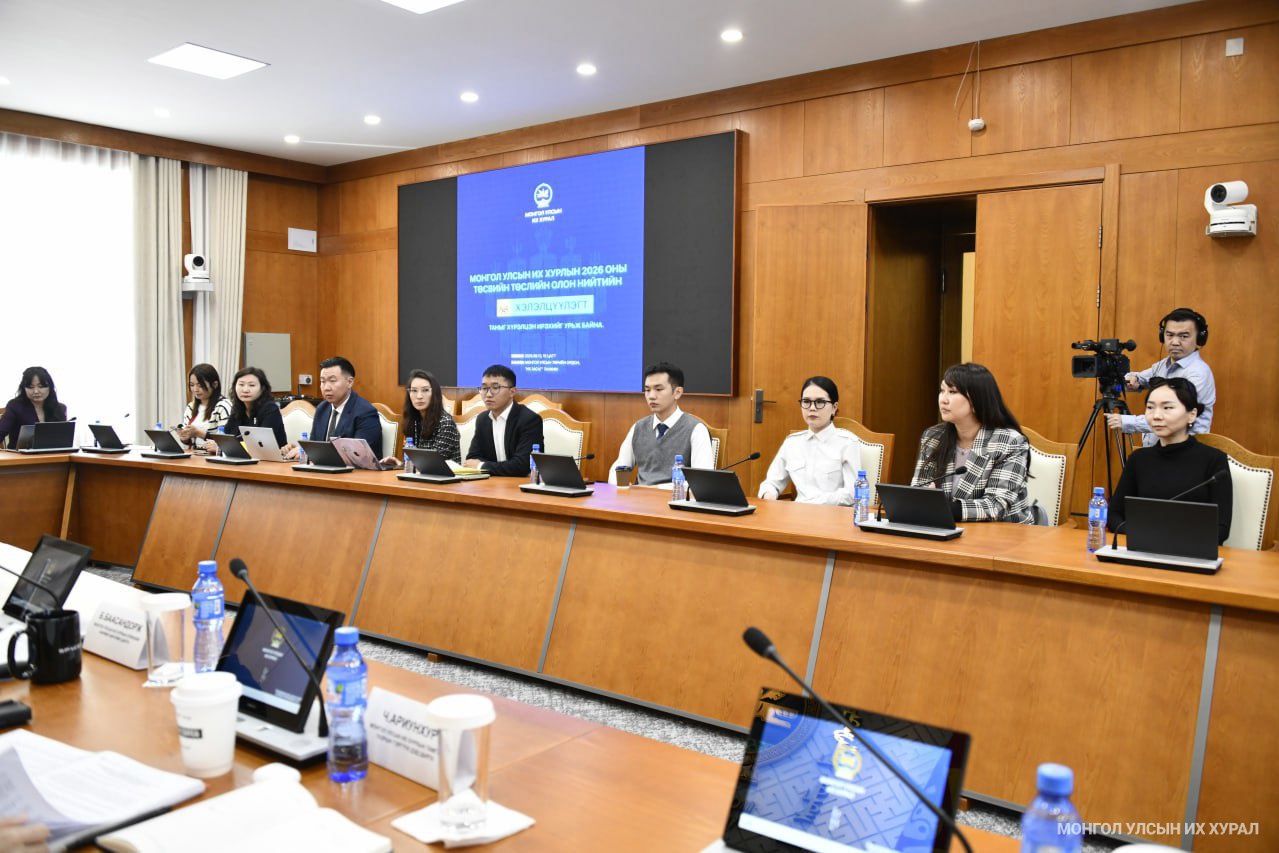 Төсвийн тухай хуулийн 281 дүгээр зүйлд заасны дагуу Монгол Улсын Их Хурлын Тамгын газраас өнөөдөр (2025.08.13) Монгол Улсын Их Хурлын 2026 оны төсвийн төслийг олон нийтэд танилцуулж, нээлттэй хэлэлцүүлэв. Хэлэлцүүлэгт иргэд, төрийн бус байгууллага болон холбогдох төрийн байгууллагуудын нийт 30 орчим оролцогч оролцов.