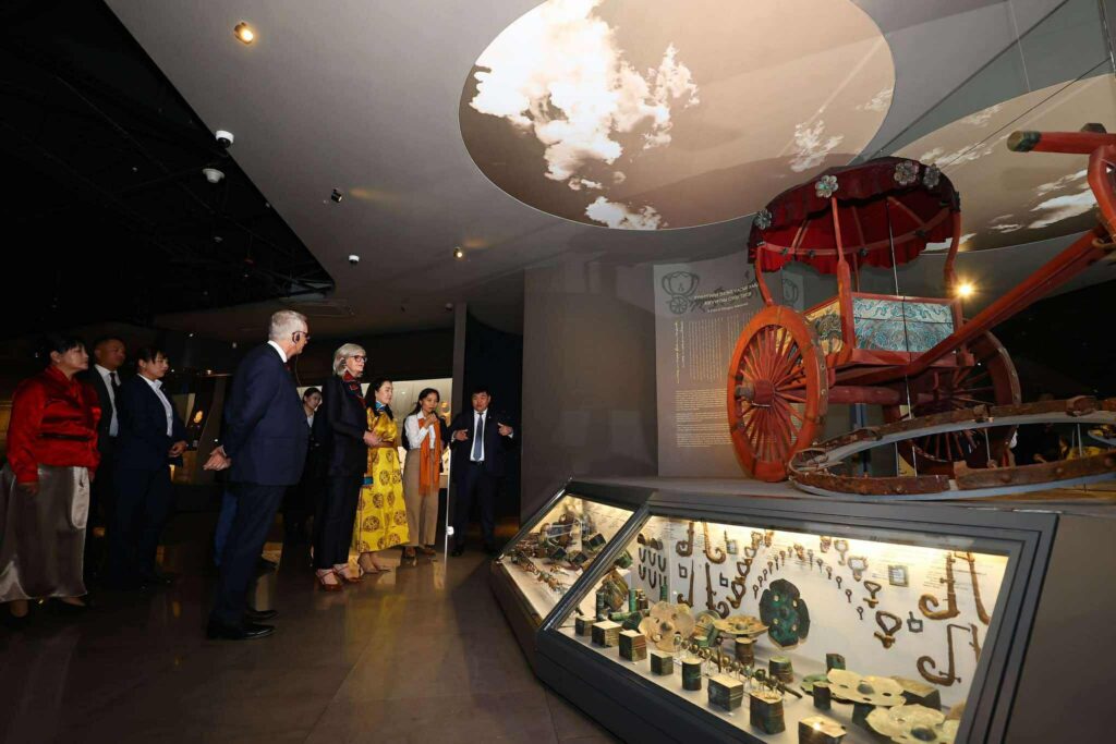 Хүндэт зочдыг Соёл, спорт, аялал жуулчлал, залуучуудын сайд Ч.Ундрам, “Чингис хаан” үндэсний музейн захирал С.Чулуун нар угтан авч, Монголын эртний төрт улсын танхим, Их Монгол Улсын танхим, Их хааны өргөөг танилцууллаа.