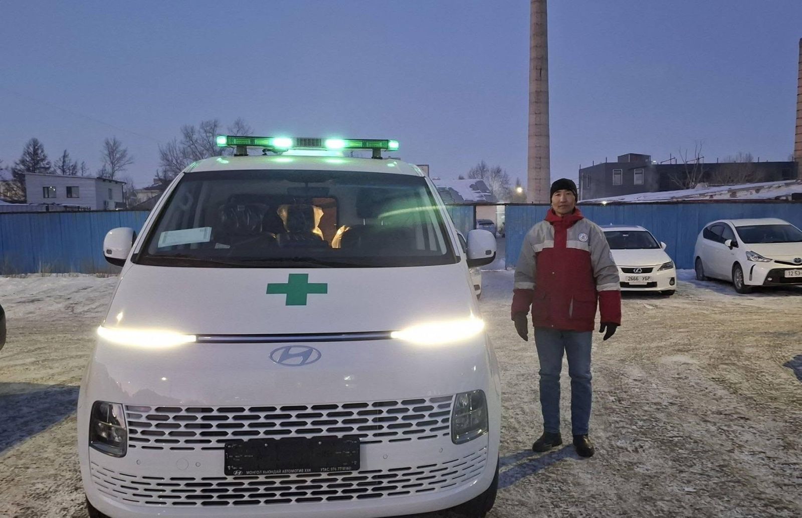 Уулзалтын хүрээнд НЭМГ-аас Налайх дүүргийн ЭМТ-д 214 сая төгрөгийн үнэ бүхий HYUNDAI STARIA маркийн түргэн тусламжийн шинэ автомашиныг гардуулан өглөө.