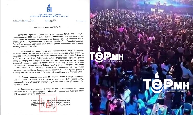 Харин 10 сарын 19-ны өдөр "Зайсан Хилл" цогцолборт зохион байгуулсан "Камертон" хамтлагийн тоглолт хөл хорионы үеийн дэглэмийг зөрчөөд зогсохгүй, олон удаагийн зөрчил гаргасанг буруушаан уг тоглолтыг зохион байгуулсан "Зайсан Хилл" цогцолборын "Собт трейд" компанид зөрчлийн хэрэг үүсгэж, тусгай зөвшөөрлийг нь цуцалласан юм.