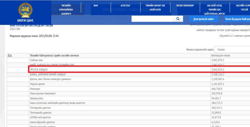Ард түмний халааснаас гардаг татварын мөнгийг хэрхэн яаж зарцууж байгааг shilendans.gov.mn та бүхэн шилэн данснаас харж болно.
