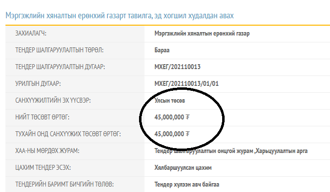 Мөн өнөөдрийн байдлаар “Мэргэжлийн хяналтын газар” эд хогшил худалдан авах тендер зарлажээ.