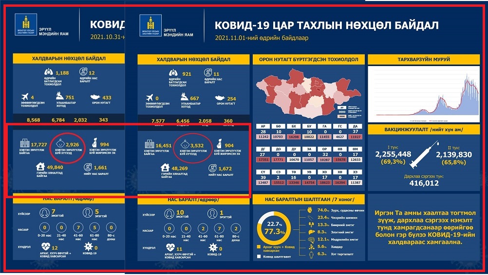 Тодруулбал, өчигдөр халдварын улмаас эмнэлэгт хэвтэн эмчлүүлж буй бага насны хүүхэд 2926 байсан бол өнөөдрийн тоон мэдээллээр 3532 болж өсжээ. Энэ нь 24 цагийн дотор 606 хүүхэд эмнэлэгт хэвтэн эмчлүүллээ.