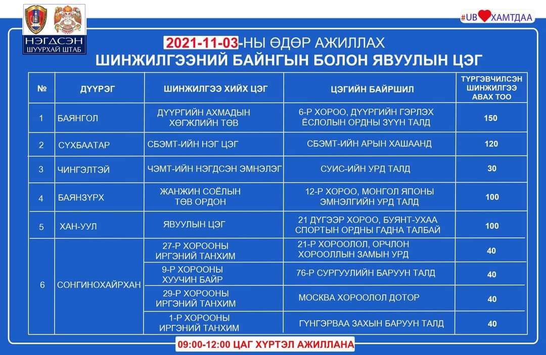 Коронавирусийн дэгдэлт нэмэгдэхтэй зэрэгцээд иргэд PCR шинжилгээнд ихээхэн хамрагдаж байна. Тэгвэл бид танд 9 дүүрэгт байнгын байрлаж ажиллаж байгаа PCR шинжилгээний цэгийн мэдээллийг хүргэж байна. Шинжилгээний цэгүүд 09:00-12:00 цагийн хооронд иргэдээс шинжилгээ авч ажиллаж байна.