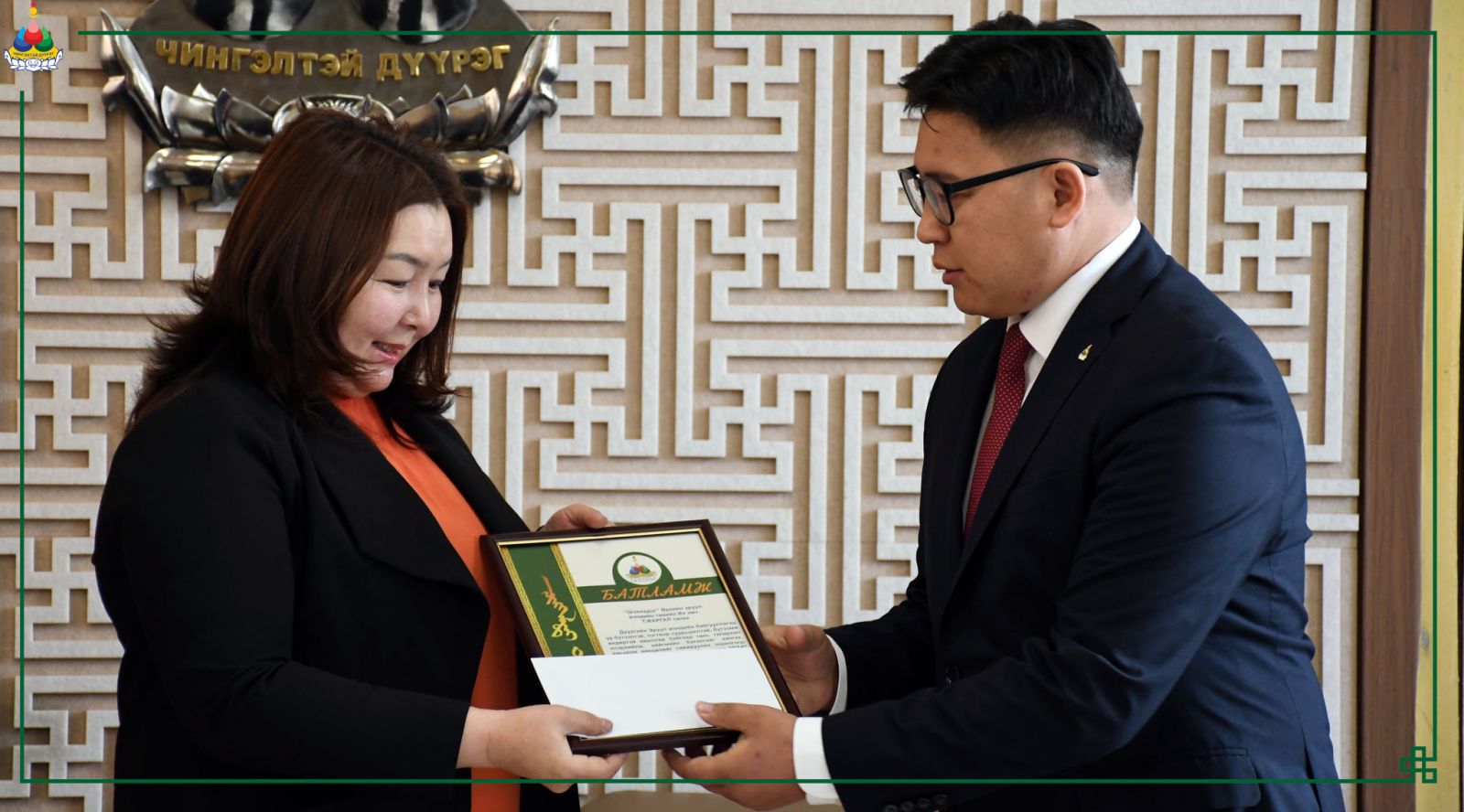 Өнөөдөр “Хүний нөөц, нийгмийн баталгаа 2024” арга хэмжээний хүрээнд нийгмийн баталгааг хангах, амьдрах нөхцөлийг сайжруулах зорилгоор орон байрны дэмжлэгт Чингэлтэй дүүргийн Эрүүл мэндийн төв болон Өрхийн эрүүл мэндийн төвийн эмч, сувилагч, эмнэлгийн ажилтнуудад батламж гардууллаа.