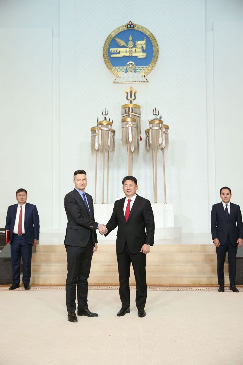 Бүгд Найрамдах Франц Улсаас Монгол Улсад суух Онц бөгөөд Бүрэн эрхт Элчин сайд Себастиан Сүрүн Монгол Улсын Ерөнхийлөгч Ухнаагийн Хүрэлсүхэд 2021 оны 11 дүгээр сарын 8-ны өдөр Итгэмжлэх жуух бичгээ өргөн барилаа.