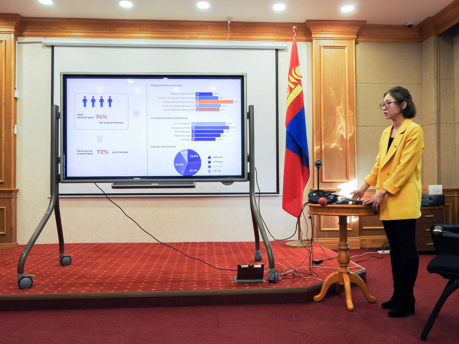Хууль зүй, дотоод хэргийн яам, Азийн хөгжлийн банктай хамтран хэрэгжүүлж буй “Хүүхэд, эмэгтэйчүүдийн эсрэг гэр бүлийн хүчирхийлэлтэй тэмцэх төсөл” -ийн хүрээнд хийгдсэн “Хөгжлийн бэрхшээлтэй хүний эсрэг үйлдэгдэж буй гэр бүлийн хүчирхийллийн чанарын судалгаа”-ны үр дүн, “Хөгжлийн бэрхшээлтэй хүнийг дэмжих үе тэнгийн сургагч, дэмжих бүлгийн хөтөлбөрийг хэрэгжүүлэх” зөвлөх үйлчилгээний үйл ажиллагааны төлөвлөгөөг танилцуулах уулзалт 11 дүгээр сарын 15-ны өдөр боллоо.