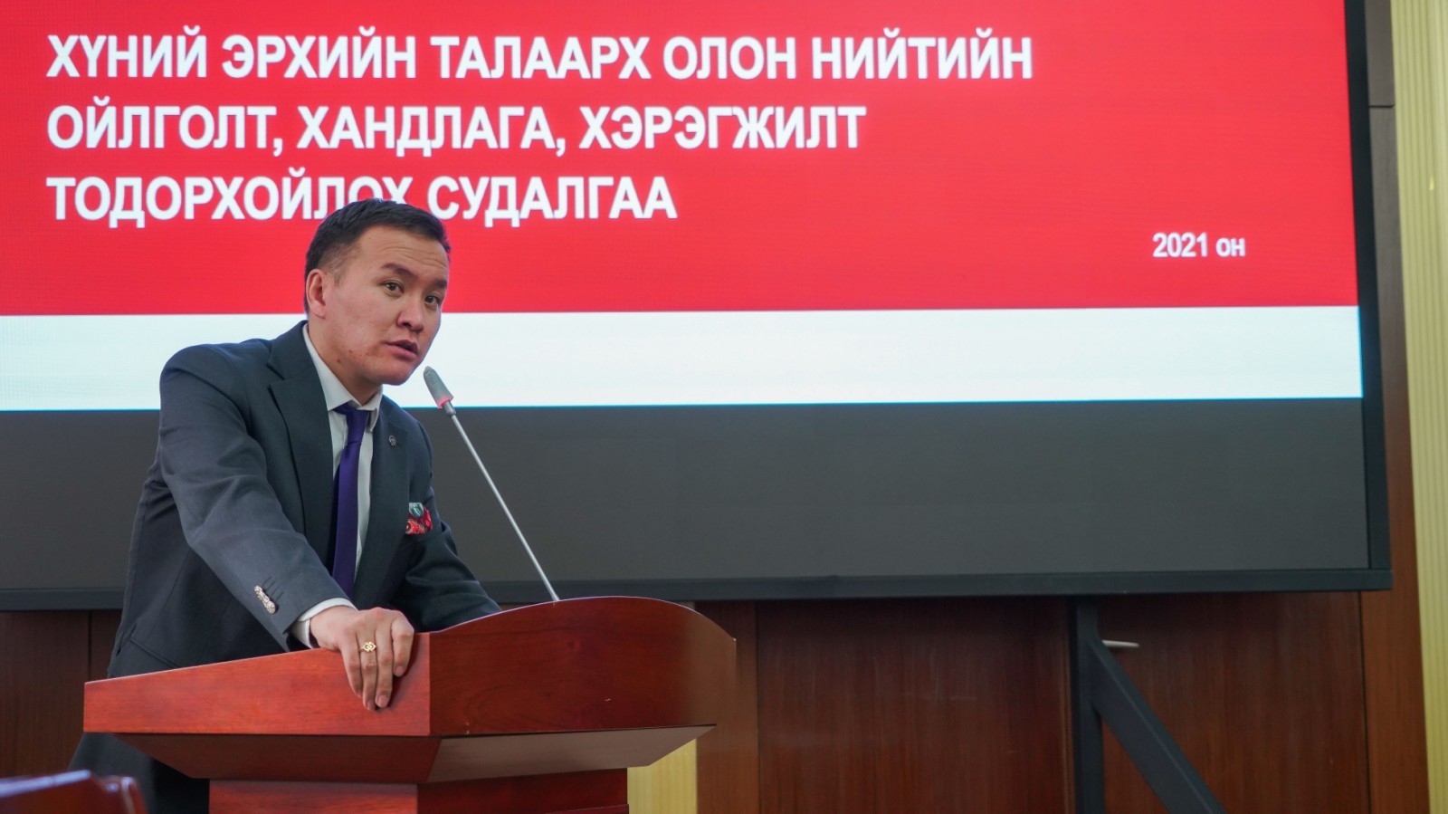 Монгол Ардын Нам парламентын ардчилсан тогтолцоог улам бүр төгс боловсронгуй болгох, хувь хүний болон бизнесийн эрх, эрх чөлөөг дээдэлсэн, хуулийн дор эрх тэгш амьдардаг нийгмийг цогцлоохын төлөө хүний эрхэд суурилсан эрх зүйн шинэтгэлийг хийх ажлыг эхлүүлээд байгаа билээ. Энэ ажлын хүрээнд Монгол улсад хэрэгжиж буй хууль тогтоомжуудад хүний эрхийн дүн шинжилгээ хийх “Хүний эрхийн нөхцөл байдал – тулгамдсан асуудал – шийдвэрлэх арга зам” сэдэвт суурь судалгаа болон иргэдийн дунд хүний эрхийн тухай ойлголт хандлагыг үнэлэх социологийн судалгаануудыг судлаачдын багтай хамтарч хийсэн юм. Уг судалгааны дүгнэлтийг танилцуулж, хуульчдын саналыг сонсох “Хүний эрх ба хуульчдын оролцоо-1” бодлогын хэлэлцүүлгийг өчигдөр хүний эрхийн хуульч, судлаачдын дунд зохион байгуулсан бол өнөөдөр УИХ-ын Хууль зүйн байнгын хорооны хуралдаанд танилцуулав.