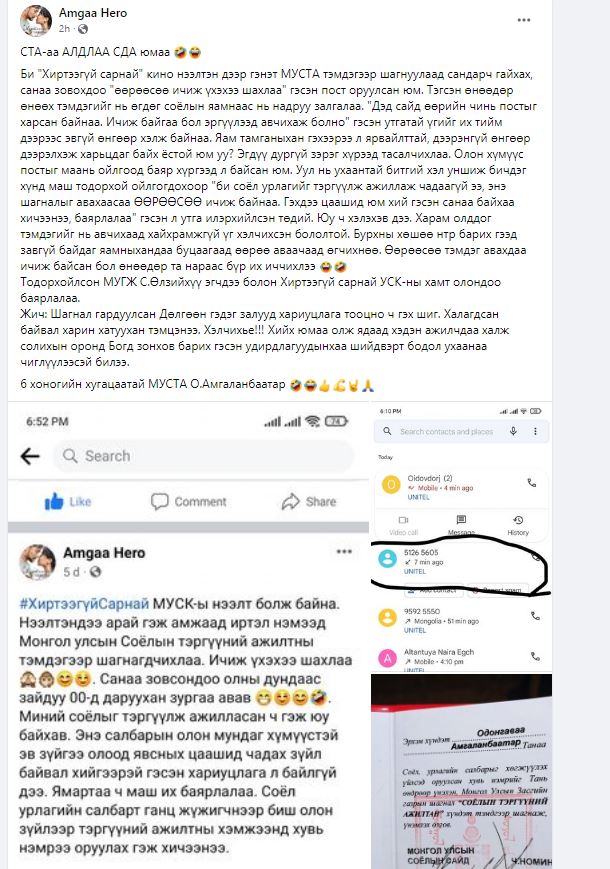 Жүжигчин О.Амгаланбаатар энэ тухай өөрийн цахим хуудаснаа ийн бичжээ. Тэрбээр "СТА-аа АЛДЛАА СДА юмаа