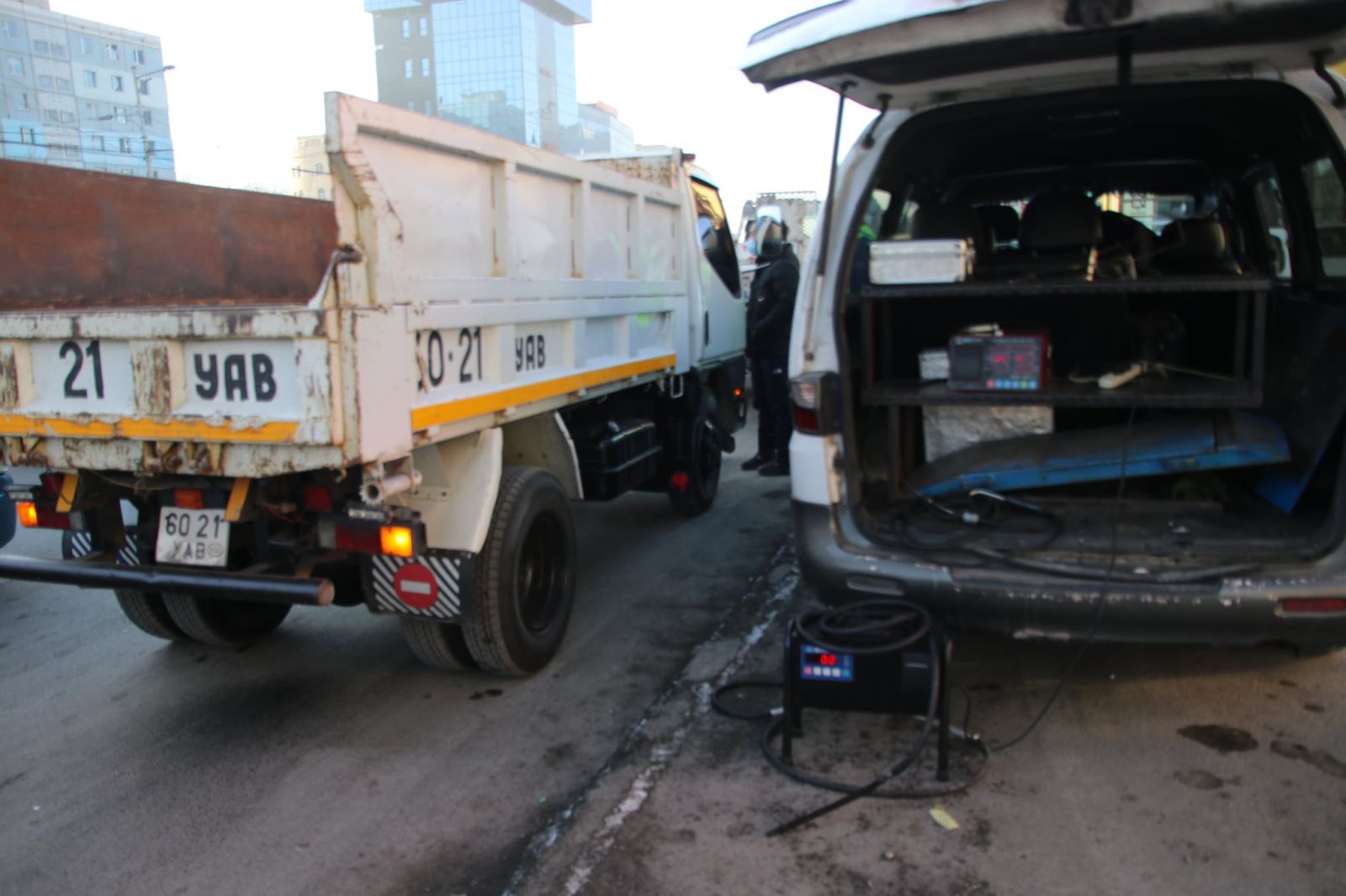 Баянгол дүүргийн Гэмт хэргээс урьдчилан сэргийлэх ажлыг зохицуулах салбар зөвлөл /ГХУСАЗСЗ/, Замын цагдаагийн хэлтсээс дүүргийн нутаг дэвсгэрт замын хөдөлгөөнд оролцож байгаа тээврийн хэрэгслийн техникийн бүрэн бүтэн байдалд шалгалт хийж байна.