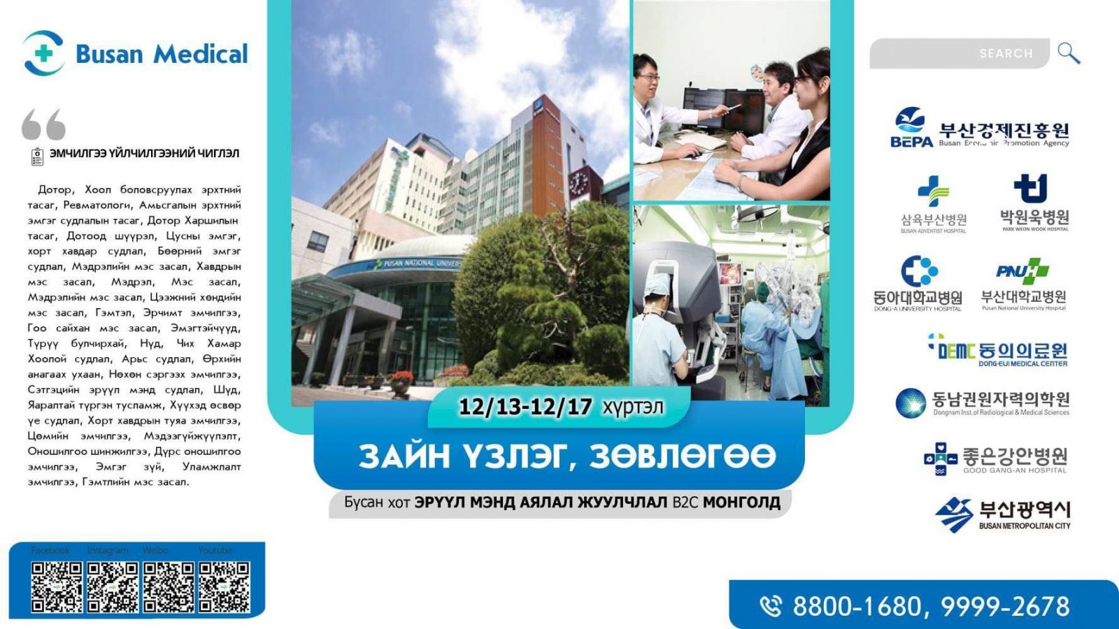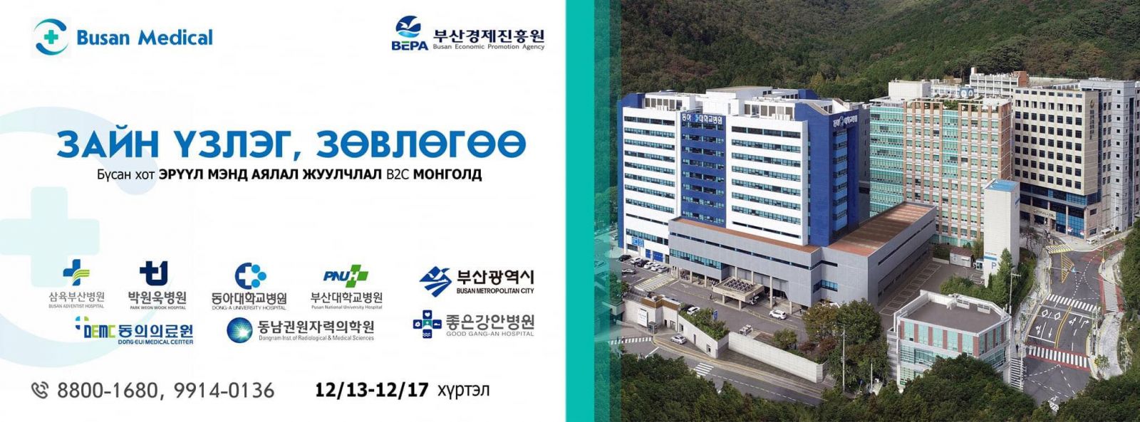 Улаанбаатар хоттой ах дүүгийн харилцаатай БНСУ-ын Бусан хотын захиргаа, Бусан хотын эдийн засгийг дэмжих агентлагаас тус хотын томоохон эмнэлгүүдийг хамруулсан цахимаар эмчтэй холбогдож зөвлөгөө авах үйл ажиллагааг Улаанбаатар хотноо зохион байгуулж байна.