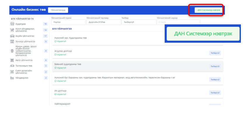 3. Танилт нэвтрэлтийн “Дан системээр нэвтрэн” үйлчилгээг авна.