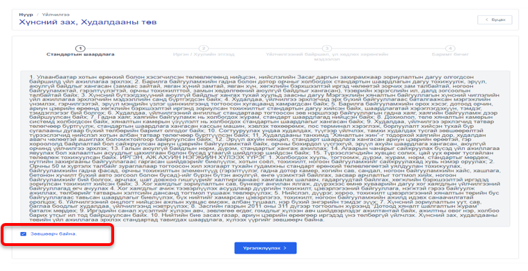 4. Үйлчилгээтэй холбоотой стандартын шаардлагатай танилцан “Зөвшөөрч байна” сонголтыг дарна.