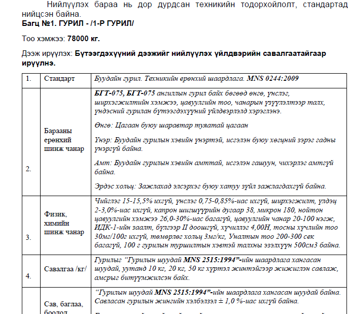 ГУРВАЛЖИН БУДАА- 2590 кг.