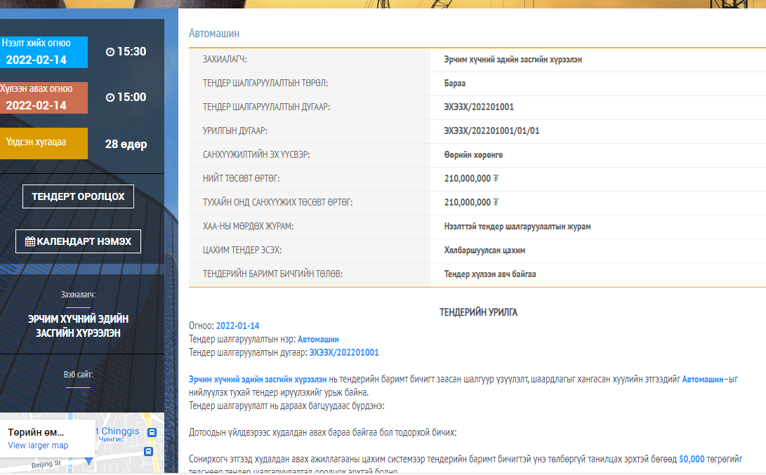 Тодруулбал, 2022 оны 1-р сарын 14-ны өдөр Эрчим хүчний эдийн засгийн хүрээлэнгийн өөрийн хөрөнгө гэх нэрээр 210 сая төгрөг бүхий автомашин PRADO-150 маркийн автомашин худалдаж авахаар тендер зарласан юм. Уг тендерийг 2022 оны 02-р сарын 14-ны өдрийн 15 цаг 00 минутаас өмнө хүлээж авахаар тооцоолжээ.