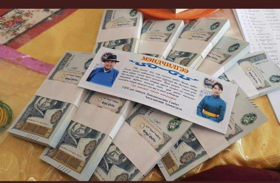 Мөн л өчигдөр Баянхонгор аймгаас сонгогдсон А.Адъяасүрэг, Д.Ганбат нар боодол мөнгө тараасан нь олны эгдүүцлийг хүргээд байна.