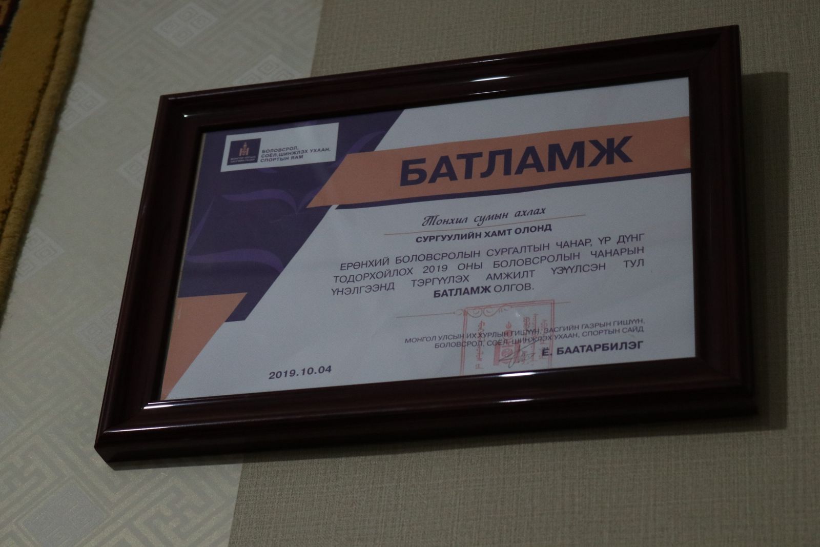 Сургууль маань Боловсролын чанарын үнэлгээний судалгааны дүнгээр улсын 20 сургуулийн нэгээр шалгарч тэргүүлсэнд баяр хүргэе” хэмээн сургуулийн хамт олон болон сурагчдад амжилт хүслээ.