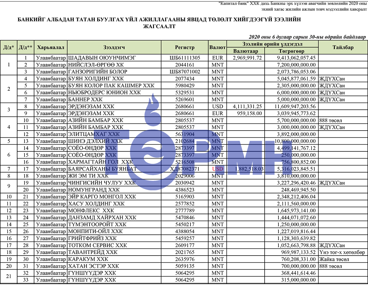 Энэ мэтээр хэдэн тэрбумаар тооцогдох асар их хэмжээний зээлдэгчид байсаар атал яагаад Монголбанк өнөөг хүртэл олонд ил болгохгүй байна вэ. Эцэст нь хэлэхэд “Капитал банк” Төвбанкны ерөнхийлөгч асан Н.Баяртсайханы таалалд нийцээгүй учраас дампуурсан гэдгийг бид олон, олон баримтыг цувралаар хүргэх болно.