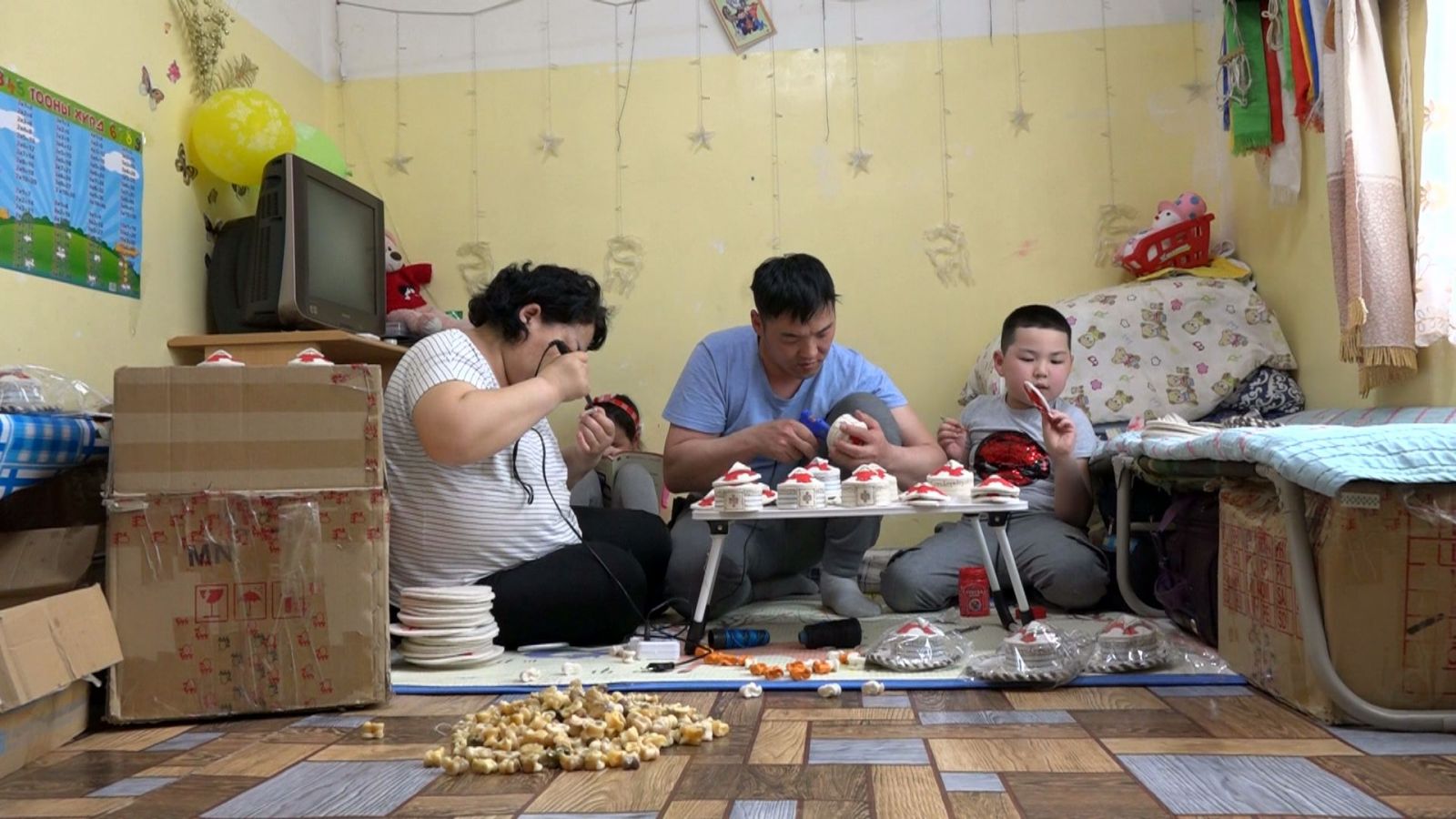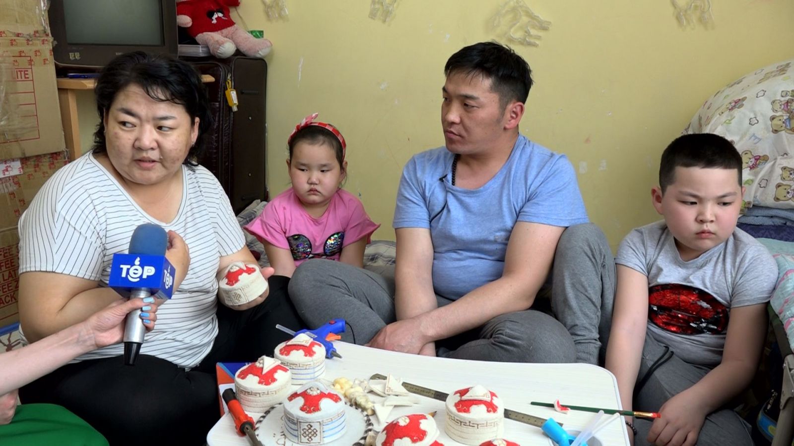 Хүү , охин хоёрынхоо төлөө амьдрахаас өөр сонголт үгүй. Шүдээ зуугаад зүтгэж явна. Хөл хориотой байх үед эхнэр нөхөр хоёр цагийн ажил хийж амь зуулгаа болгодог гэнэ. Мэдээж эмчилгээний төлбөр, эмээс эхлээд маш их зардал гардаг учраас хөдлөхгүй л бол амьдрал шууд зогсоно. Эмээ авч чадахгүй, хоёр хүүхдээ хоолгүй хонуулна. Тийм учраас хөдөлмөрлөхөөс өөр аргагүй. Нөхөр нь олон төрлийн эмгэг хавсарсан, хоёр хөл нь суга таягтай учраас хүнд ажил хийж чаддаггүй тул тогтвортой ажил хийж чадахгүй байгаа. Гэр бүлээрээ ярилцаж байгаад эсгий урлалаар 4-н бэрхтэй, эсгий дэвсгэртэй гэр хийж эхэлжээ. Нөхөр нь гарын уртай учраас эсгий дэвсгэр дээрээ “Монгол” гэдэг үгийг уйгаржин бичгээр бичжээ. Гар урлалаа гэр бүлээрээ хамтдаа хийнэ. Тухайлбал аав гэрээ эсгэж, монгол гэдэг үгээ бичиж, ээж бүслүүрийг нь оёж, дэвсгэрийг эмжинэ, харин хүү өрөлт хийдэг бол охин монгол гэсэн бичгийн цоолтуурыг угааж тусалдаг гэнэ. Одоогийн байдлаар хөл хорионы үеийг ашиглаад 200 гаруй гэр хийчихсэн гэж гэрийн эзэгтэй ярьж байлаа. Хүний хорвоод мэндэлсэн ихэр үрсээ хажууд нь харж байгаад амьсгалын аппаратыг нь салгуулна гэдэг цусан зүрхтэй , усан нулимстай хэний ч зүрхийг сийчмээр...5-хан настай охин нь ээж,аавыгаа эрүүл болгоод тэнгэрийн оронд байгаа хоёр дүүтэйгээ сайхан амьдармаар байна гээд цурхиран уйлах.