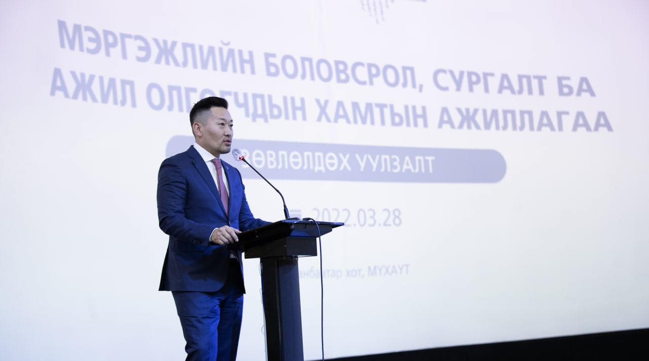 Боловсрол, шинжлэх ухааны яам, МҮХАҮТ хамтран "Мэргэжлийн боловсрол ба ажил олгогчдын хамтын ажиллагаа" зөвлөлдөх уулзалтыг зохион байгууллаа. Уулзалтад танхимаар 70 гаруй, цахимаар 100 гаруй оролцогч оролцож, санал солилцов.