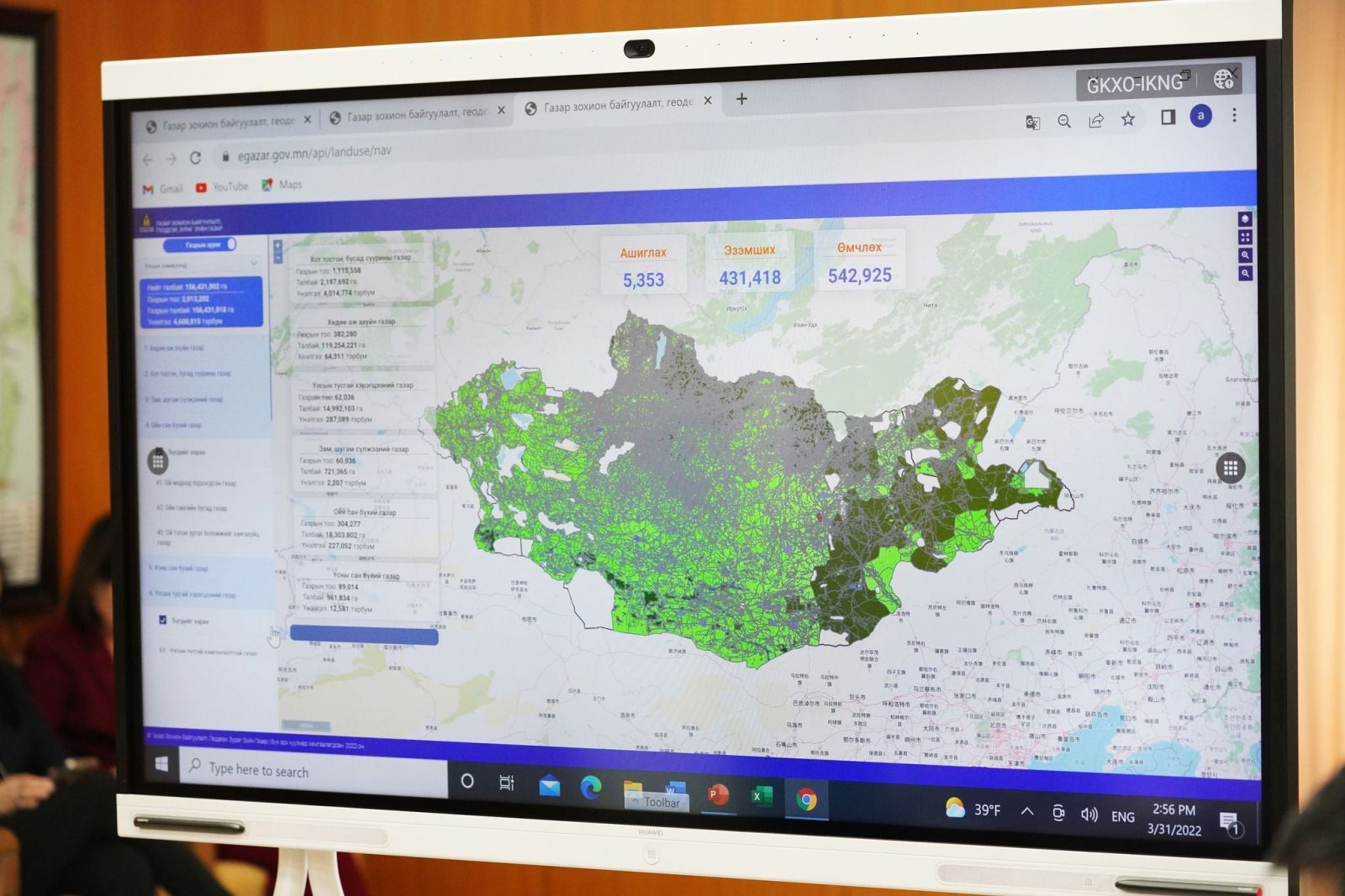 Одоогоор ойн болон усны сан бүхий газар, улсын тусгай хэрэгцээний газрууд, хөдөө аж ахуйн зориулалттай, хот тосгоны болон зам дэд бүтцийн газруудыг нэгдсэн цахим системд холбоод байна.
