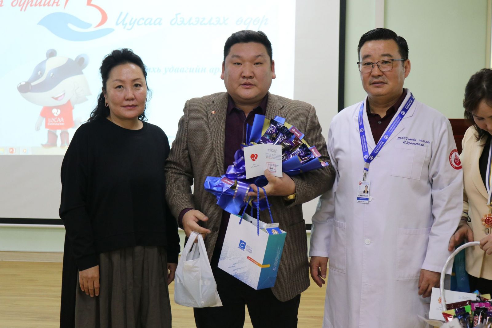 Арга хэмжээний үеэр 100 буюу түүнээс дээш удаа цус, цусны бүрэлдэхүүн хэсгээ бэлэглэсэн “Хүндэт донор” Н.Алтантуяа “МӨНГӨН ДОНОР, “Хүндэт донор” Д.Солонго, О.Дашдэндэв нар “ХҮРЭЛ ДОНОР” цол тэмдгээр шагнагдлаа. Мөн “Хүндэт донор” П.Буяндэлгэр, С.Галбадрах нар “Бахархал 50”, ”Бахархал 40” тэмдэг, цусны донор Ч.Сэмжаандондов, Д.Оюун-Эрдэнэ, Б.Ганболд нарт “Бахархал 30, 20,10 тэмдгийн эзэд боллоо.