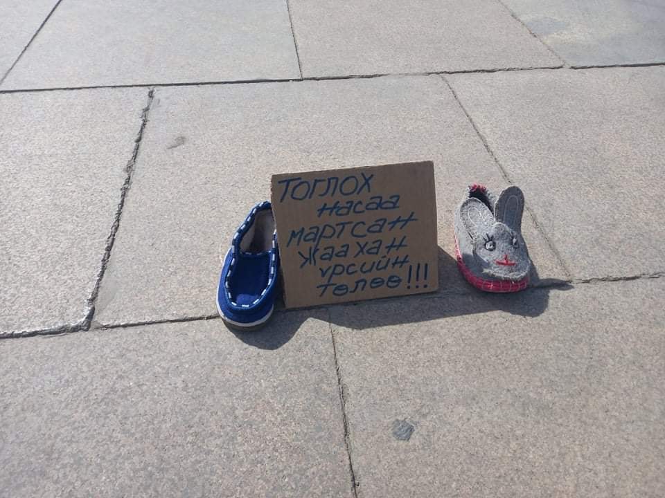 Жагсаалд 200 гаруй ээжүүд нэгдэж өрөөсөн гутлаа, тулгамдаж буй асуудлын хамт ирүүлжээ.