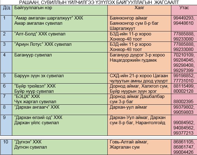 АМРАЛТЫН ҮЙЛЧИЛГЭЭ ҮЗҮҮЛЭХ БАЙГУУЛЛАГЫН ЖАГСААЛТ