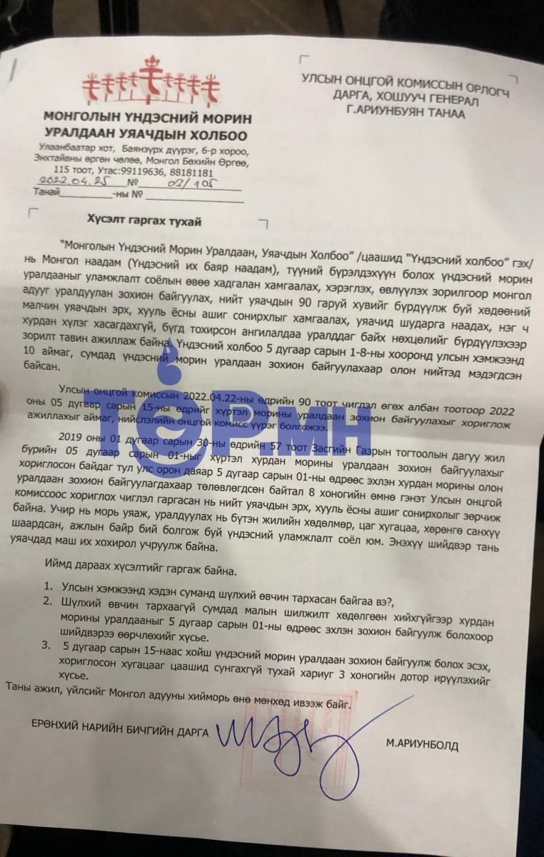 Гэтэл УОК урьдчилж мэдэгдэхгүйгээр найм хоногийн өмнө гэнэт ийм шийдвэр гаргасан нь малчид, уяачдад эдийн засаг хохирол учруулаад зогсохгүй болоод хууль ёсны эрхийг ноцтой зөрчиж байгаа үйлдэлд хэмээн тэд үзэж байна. Морь уяж, уралдуулна гэдэг бол бүтэн жилийн хөдөлмөр, цаг хугацаа, хөрөнгө санхүү шаардсан, ажлын байр бий болгосон ажил тул ингэж малчид, уяачдын ажлыг үнэгүйдүүлж, хохирол учруулж болохгүйг сануулж, УОК-т хүсэлт гаргалаа.