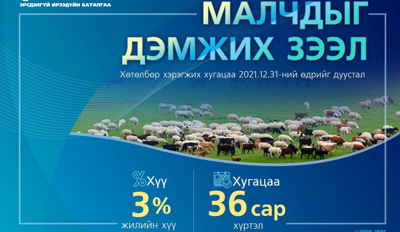 Монгол Улсын Засгийн газар малчин, мал бүхий этгээдийн байгалийн эрсдэлийг даван туулах чадварыг бэхжүүлэх, малын чанарыг сайжруулах, мал аж ахуйн гаралтай бүтээгдэхүүн үйлдвэрлэлийг нэмэгдүүлэхэд малчдын зээл олгох чиглэлийг баримталж байна. Засгийн газар гэрээ байгуулсан арилжааны банкнуудаас малчдад олгосон зээлийн хүүгийн дэмжлэгийг банканд төлөх үүрэг хүлээсэн. 2021 оны 5-р сарын 14-ний байдлаар 3438 хүсэлт ирснээс 2146 малчинд зээл олгожээ. Зээлийн хэмжээний хувьд, 53.3 тэрбум төгрөгийн хүсэлт ирснээс 29.9 тэрбум төгрөгийг олгосон байна.